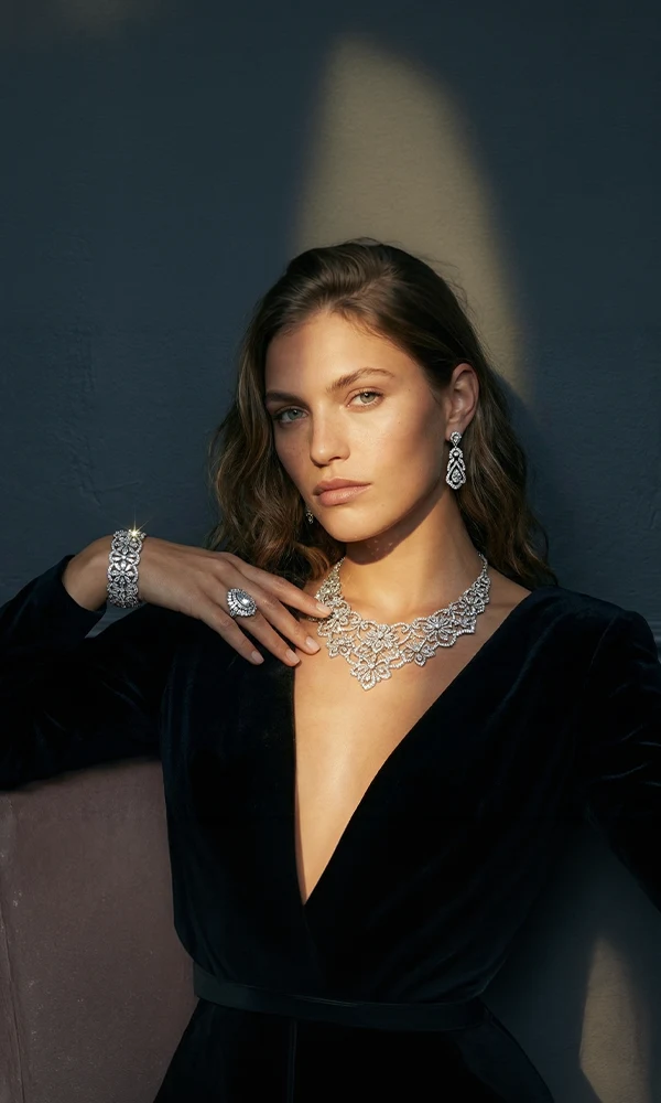 Modern technology replaces the traditional photo studio. Physical jewelry is integrated into photorealistic digital environments, reducing production costs while maintaining visual perfection.