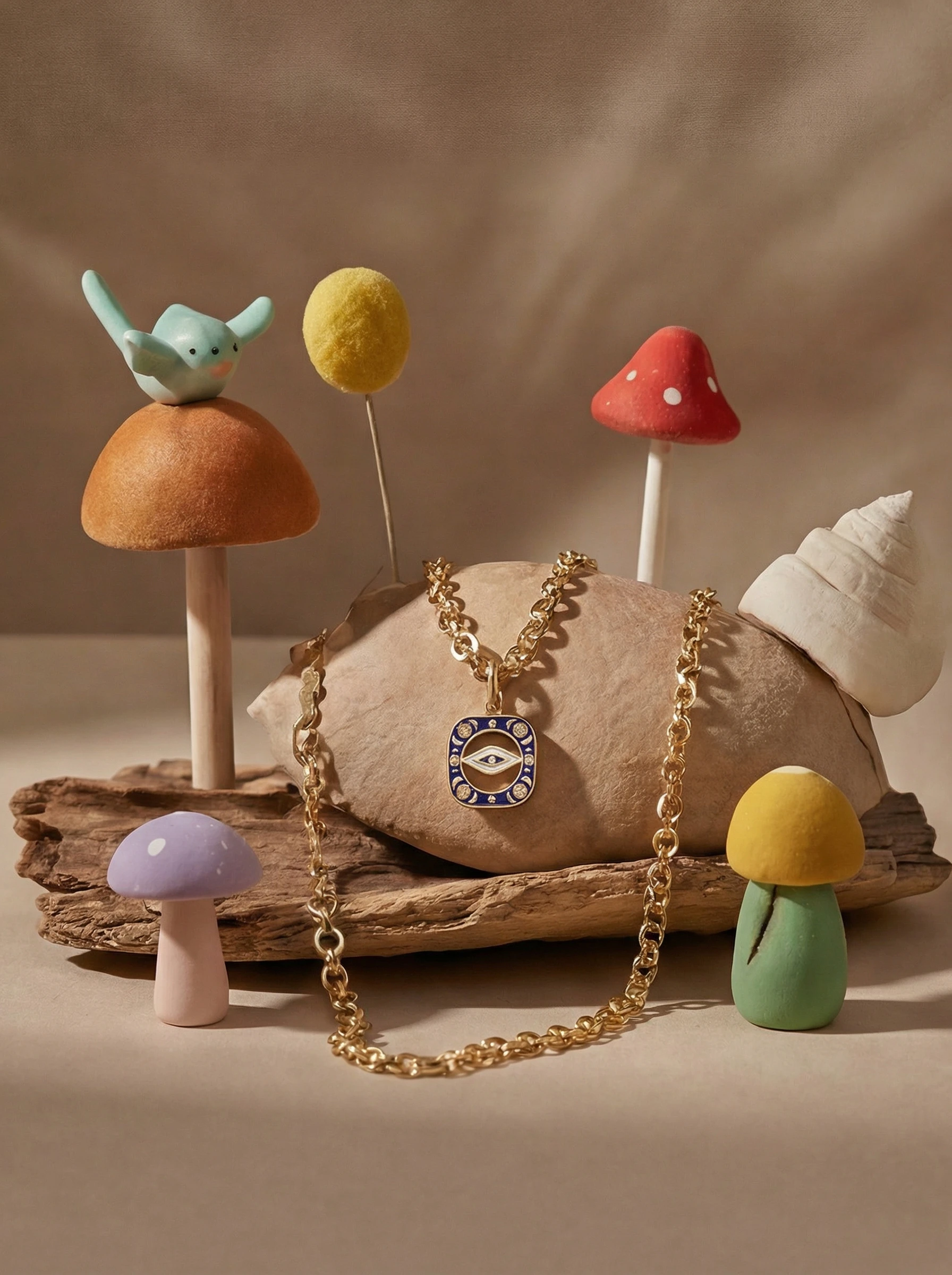 The original physical jewelry is integrated into the selected digital environment. Strict attention is paid to ensure the exact structure, metal textures, and gemstone details of the real product remain unaltered.